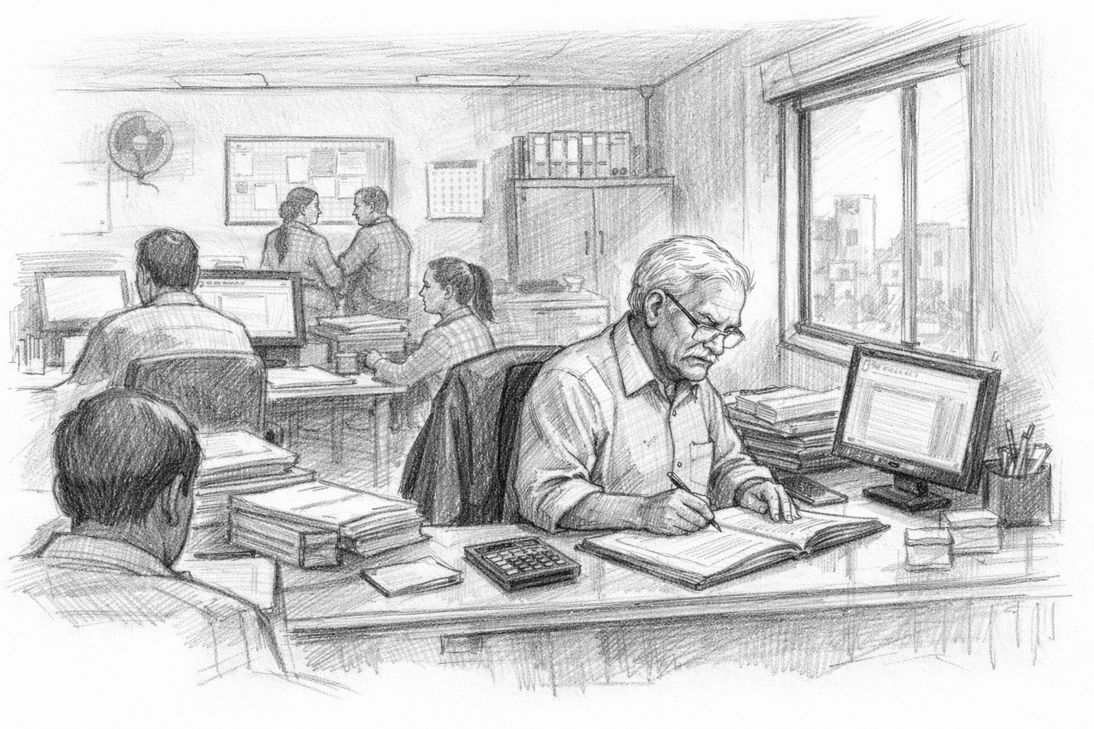 By evening, the truth had settled gently, unmistakably: Sadashiv had not filled the office. He had anchored it. Quietly, without a fuss or noise. He helped everyone, took no credit. And collectively did a lot more than his usual work than every one of them was aware of.