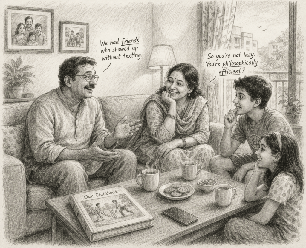 Then Aarav said, “So basically… you’re saying you’re not lazy. You’re philosophically efficient?”